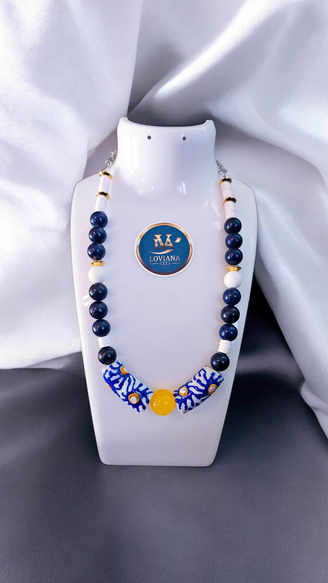 Chaque détail est pensé pour sublimer votre style : Véritable lapis-lazuli : Une pierre naturelle aux reflets bleus profonds, connue pour son énergie apaisante et son élégance intemporelle.