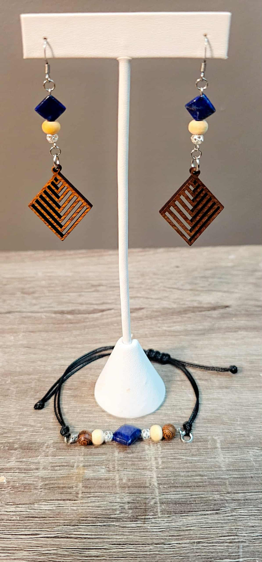 Chaque paire est unique : Les variations naturelles du bois et des pierres font de vos boucles d’oreilles une pièce vraiment personnelle