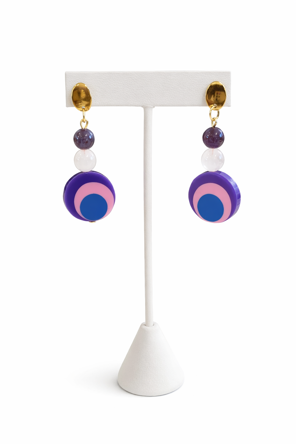Délicates et lumineuses, les boucles d’oreilles Halo Céleste mettent en valeur l’harmonie naturelle du quartz rose et de l’améthyste à travers un design circulaire élégant et contemporain.