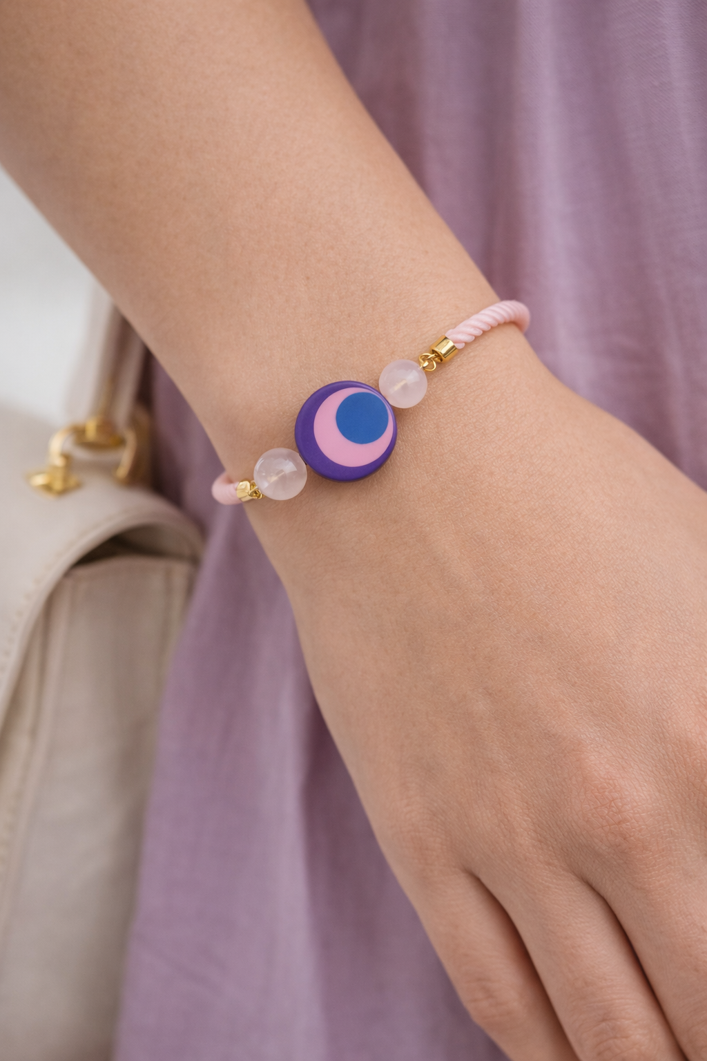 Le quartz rose, symbole d’amour et de tendresse, s’associe à l’améthyste, reconnue pour favoriser le calme et la clarté d’esprit. Ensemble, ces pierres naturelles créent un bijou raffiné, empreint de douceur et de spiritualité.